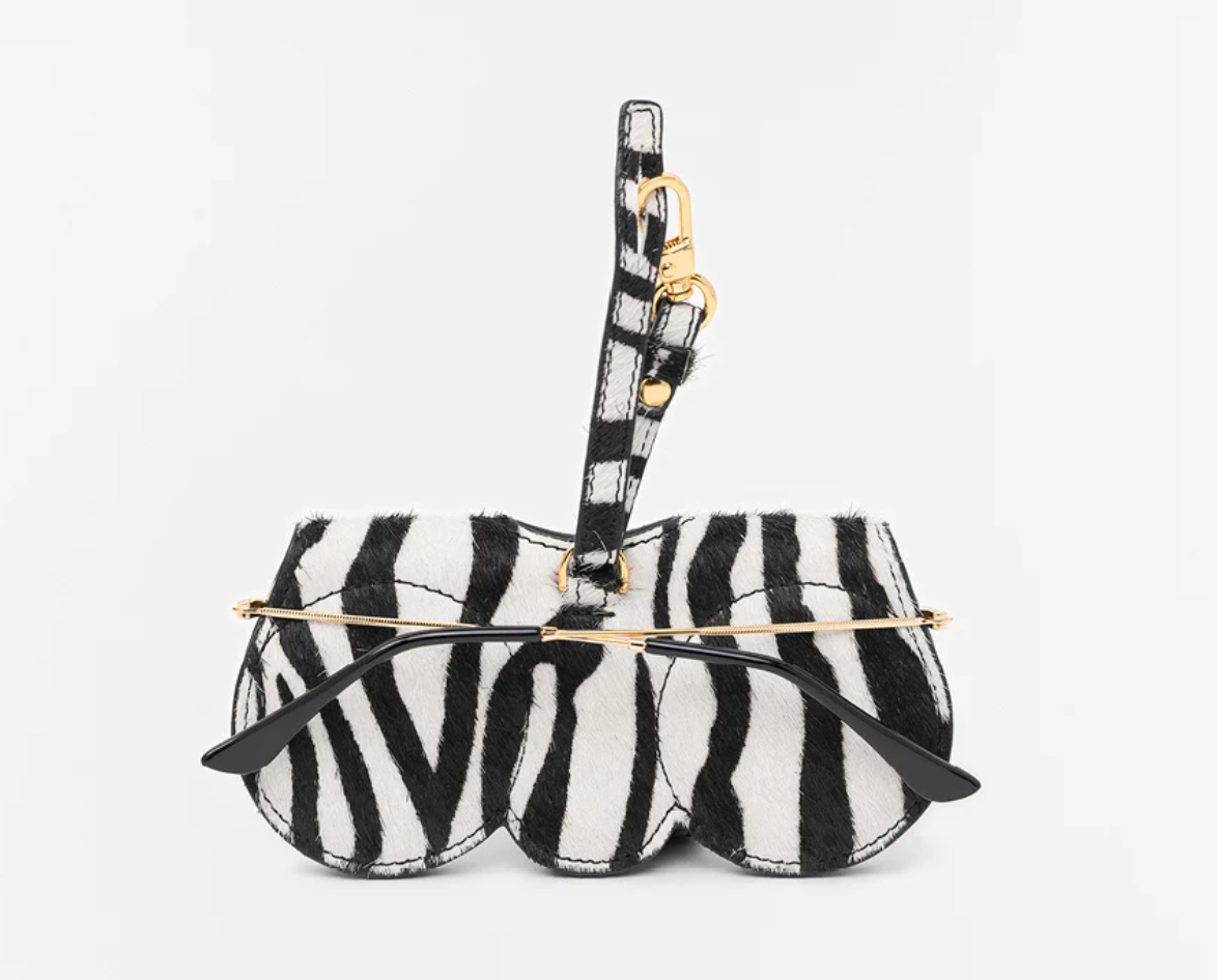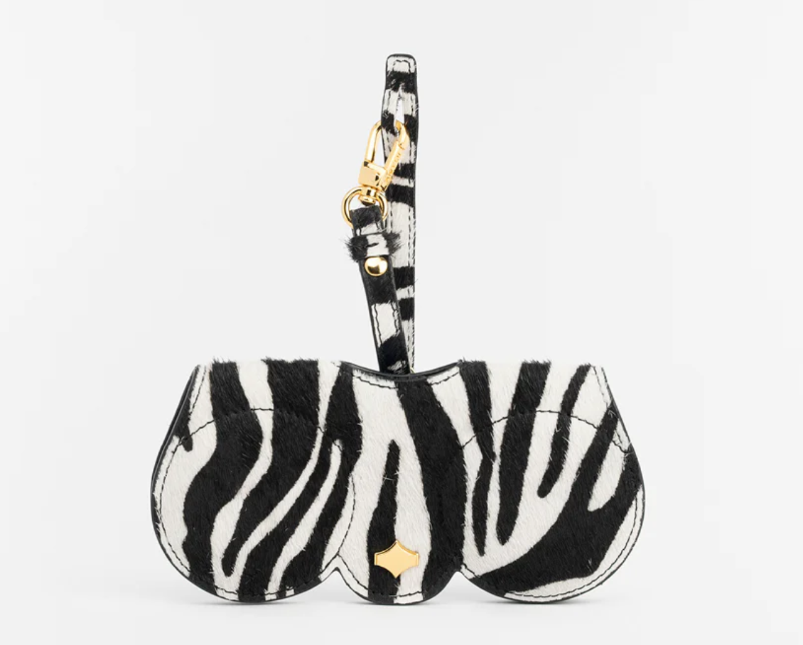 In unserem patentierten SunCover kannst Du Deine Brille so stylish wie nie aufbewahren und hast sie stets griffbereit. Mit dem inklusiven Leather Hanger lässt sich das SunCover überall befestigen, am besten harmoniert es natürlich mit einer ANY DI Handtasche. Gefertigt ist das begehrte Accessoire aus Rindsleder mit echtem Fell, welches im Zebralook bedruckt wurde. Das Muster erscheint somit immer ein wenig anders, ein echtes Unikat also! Die 24 Karat Goldplattierung der Hardware macht den edlen Look komplett.