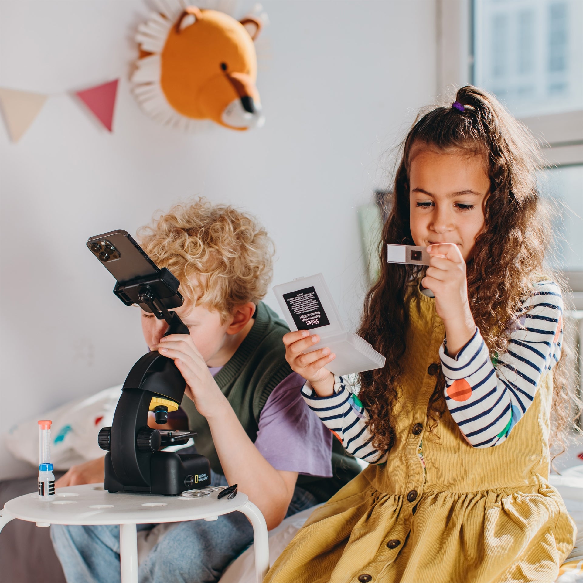 Das NATIONAL GEOGRAPHIC 40-640x Mikroskop ist ein optimales Mikroskop für Einsteiger und Entdeckungen können ganz einfach aufgrund des Smartphone-Adapters mit Freunden geteilt werden